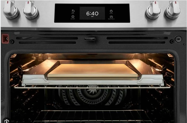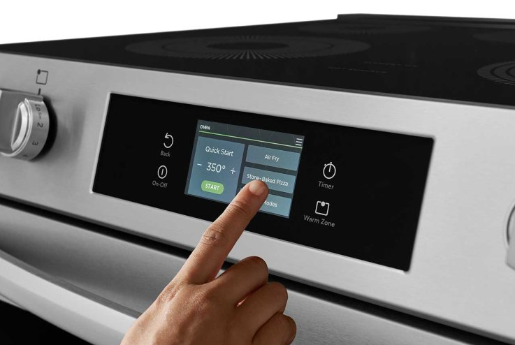 The Frigidaire Gallery 30″ Front Control Electric Range with Stone-Baked Pizza is the only range designed to reach temperatures of 750⁰F+, the high heat needed to create authentic restaurant-quality pizzas, in as little as two minutes – right in your oven. In addition to Stone-Baked Pizza, the oven offers over 15+ different ways to cook like No Preheat, Air Fry, Slow Cook, Steam Bake, Steam Roast, Air Sous Vide, Convection Roast, Convection Bake, Bread Proof, and more. The cooktop features five elements, including a powerful 3,200 Watt EvenTemp™ element for faster cooking. It also includes backlit LED knobs, a sleek touchscreen control panel, and a fingerprint-resistant Smudge-Proof® Stainless Steel finish.